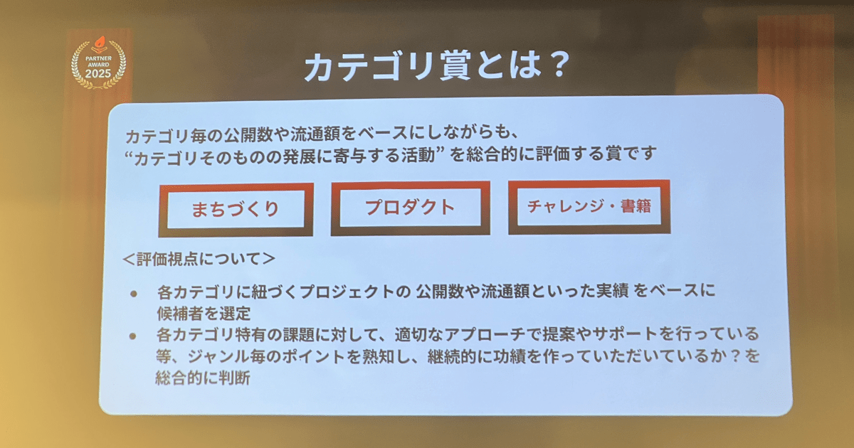 カテゴリ賞は、単に公開数や流通額といった数字だけでなく、カテゴリそのものの発展にどれだけ寄与したかを総合的に評価する賞です。