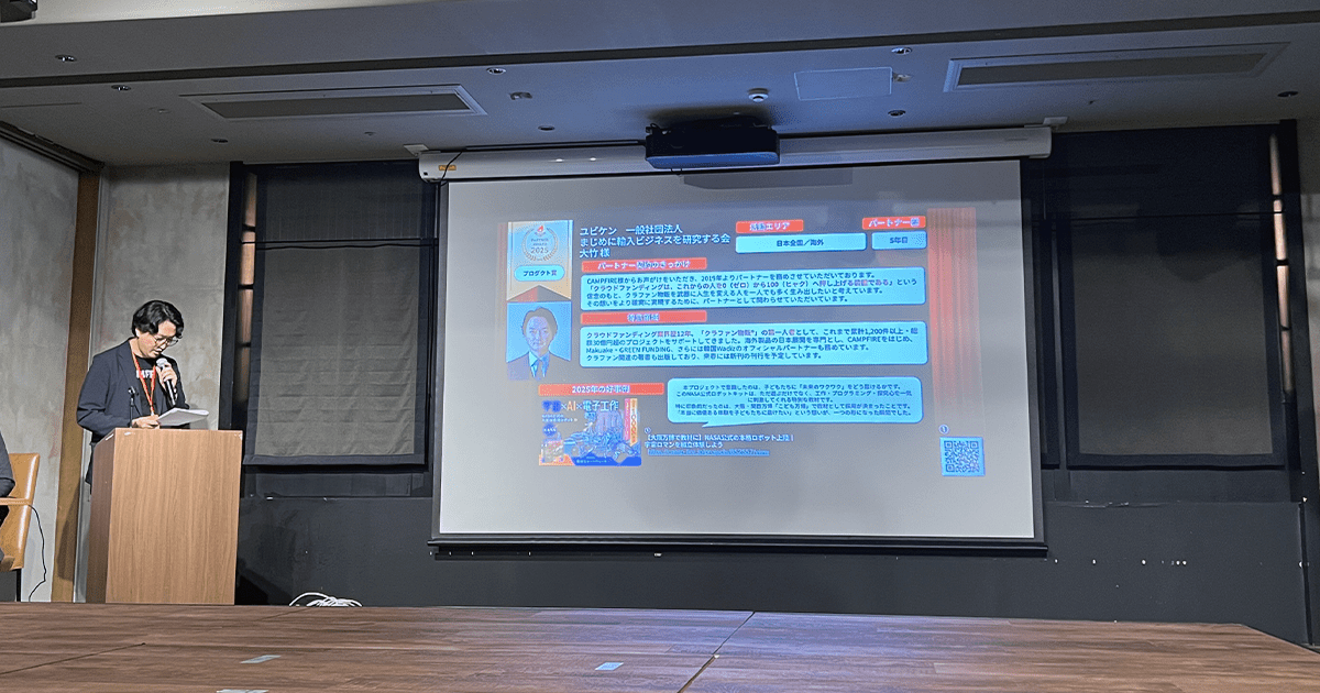 表彰式の会場は、1年間クラウドファンディングに向き合ってきた仲間たちの熱量で満ちていて、まさに挑戦の集大成という空気が広がっていました。