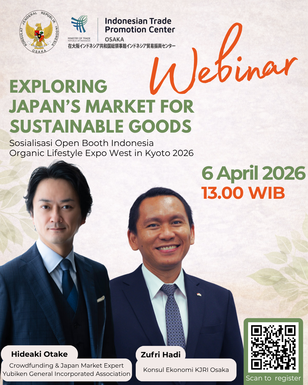「インドネシアには、自然の恵みを活かした素晴らしいオーガニック製品が数多く存在します。今回、在大阪インドネシア共和国総領事館のコンサルタントとして、インドネシアの優れた事業者と日本の消費者・バイヤーをつなぐ架け橋になれることを大変光栄に思います。オーガニックライフスタイルEXPO West in 京都という素晴らしいプラットフォームを通じて、インドネシア産品の魅力を最大限に発信し、両国のビジネス・文化交流に貢献していきたいと考えています。」